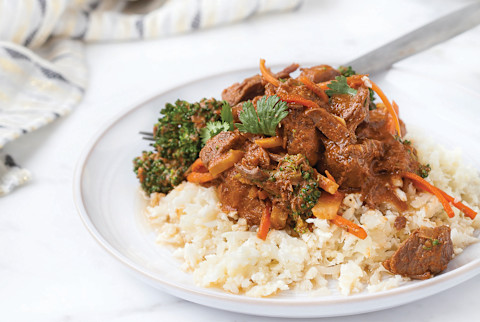 This Thai Beef Stew is a hearty and warming dish that's great for serving a group or making a stash of leftovers. Serve over cauliflower rice for a great grain-free and Paleo-friendly meal.