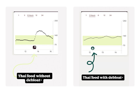 Using a CGM gave me a clearer picture of how different meals impacted my glucose levels. On days when I had higher-carb foods without fiber, I noticed sharper spikes. But when I included debloat+, the difference was noticeable.